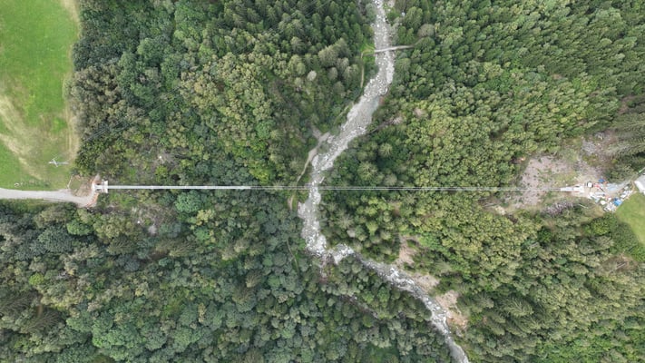 Die längste Hängebrücke im Kanton Graubünden geht in die finale Bauphase.